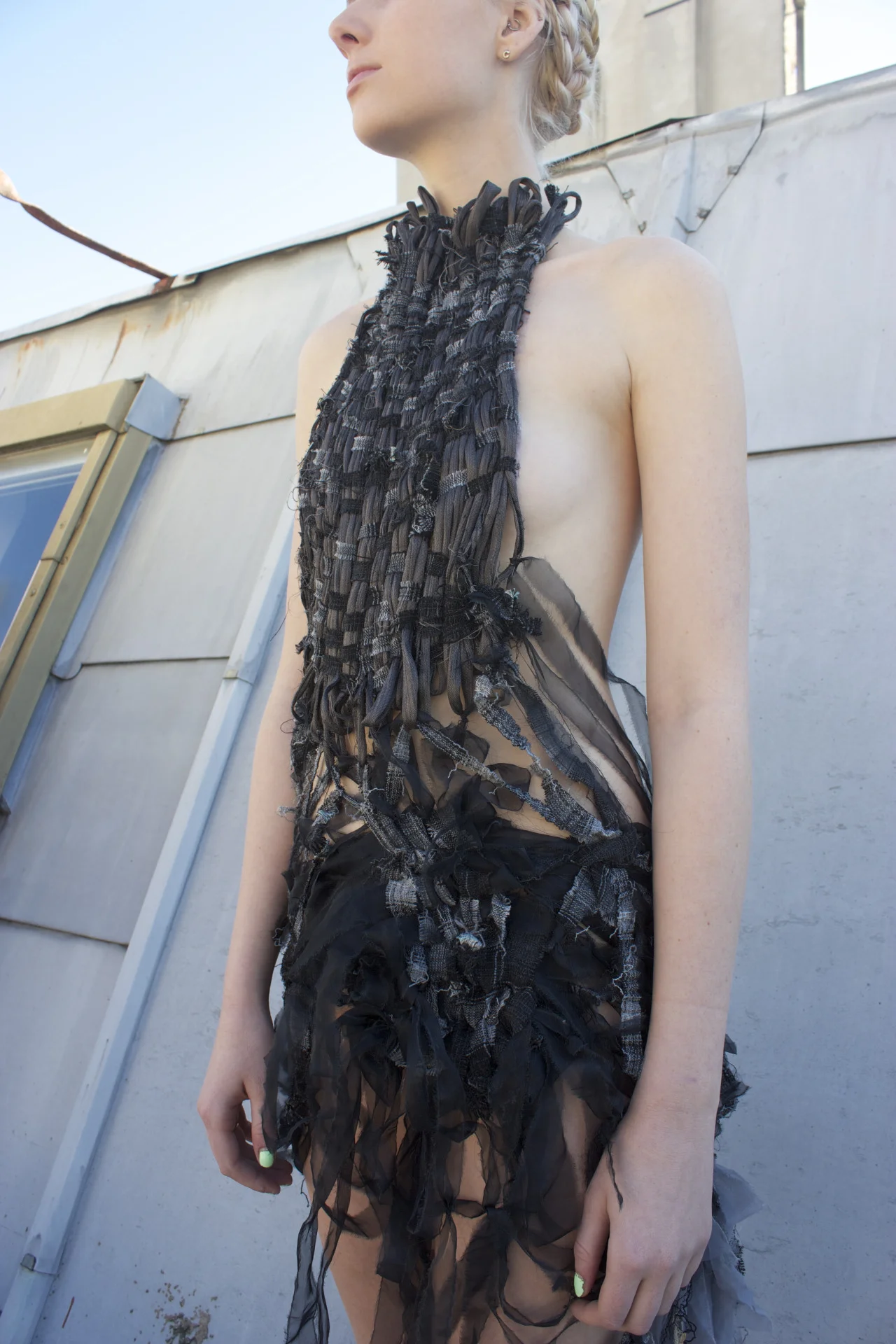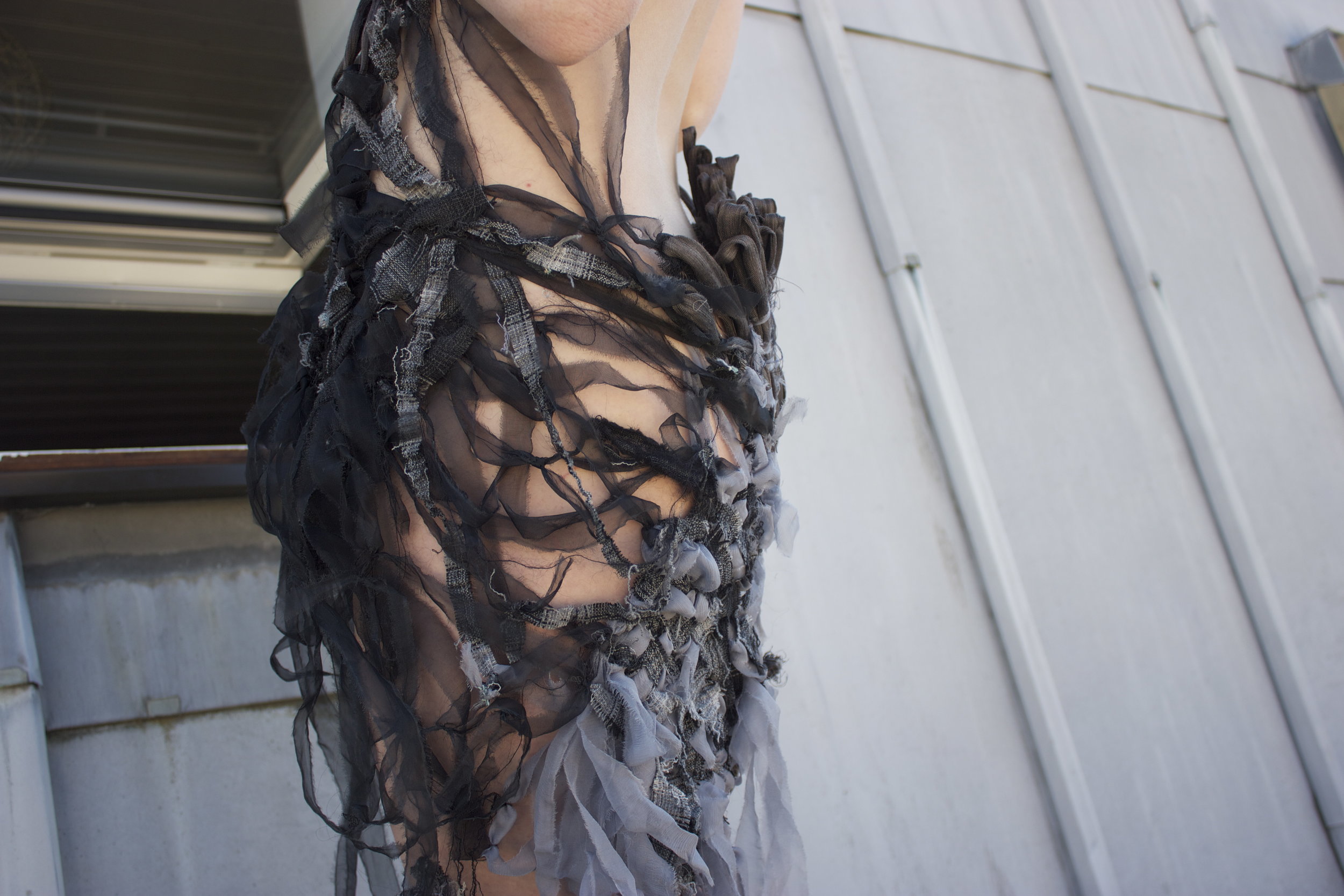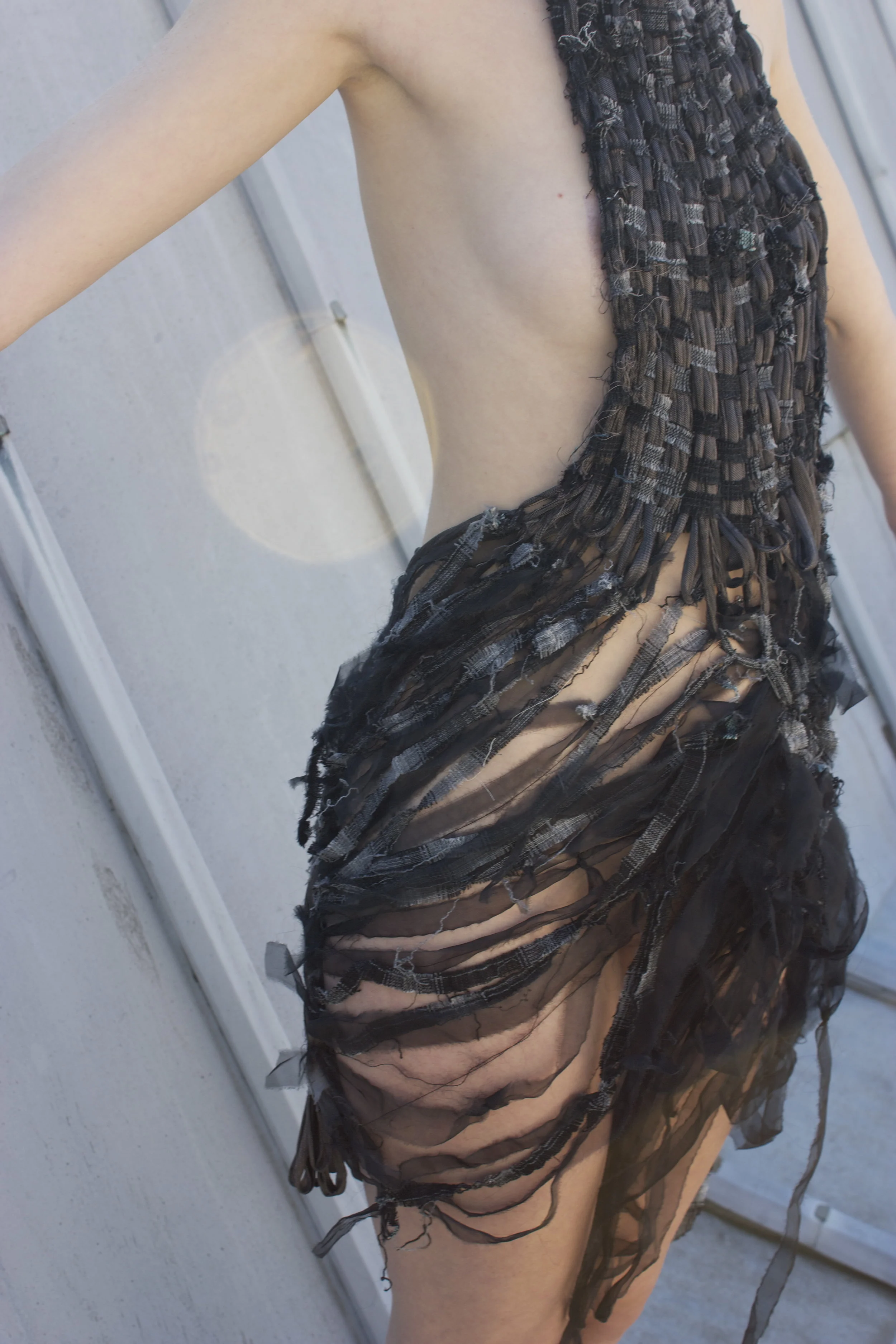 hand-knit + woven raw silk, chiffon, + organza